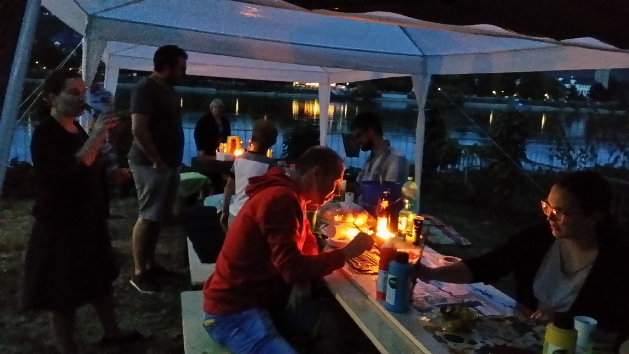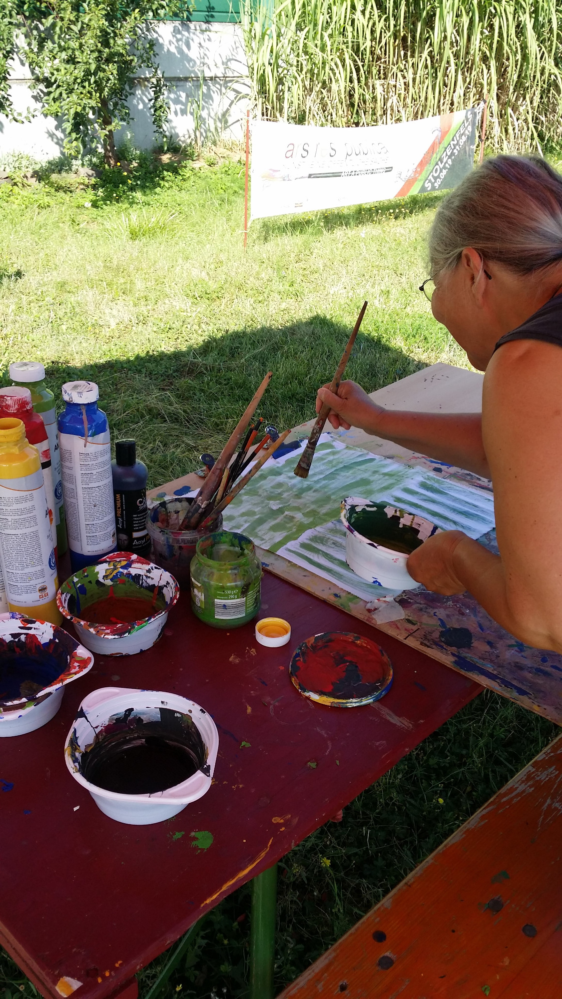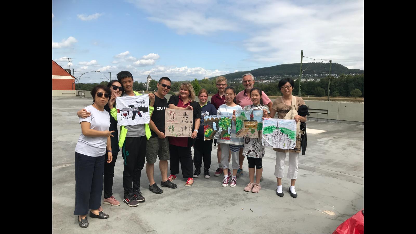 2019 fand die erste Ausstellung von ars res publica in Koblenz statt. Über 350 Kunstwerke wurden in dem 2 monatigen Kunstprojekt am Rheinradweg Rotterdam--Basel von durchfahrenden internationalen Bürgern und Bürgerinnen geschaffen. Hier auf dem Bild ein Paar aus Kalifornien. Man sieht die Begeisterung!